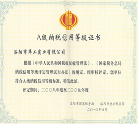 A級納稅信用等級證書